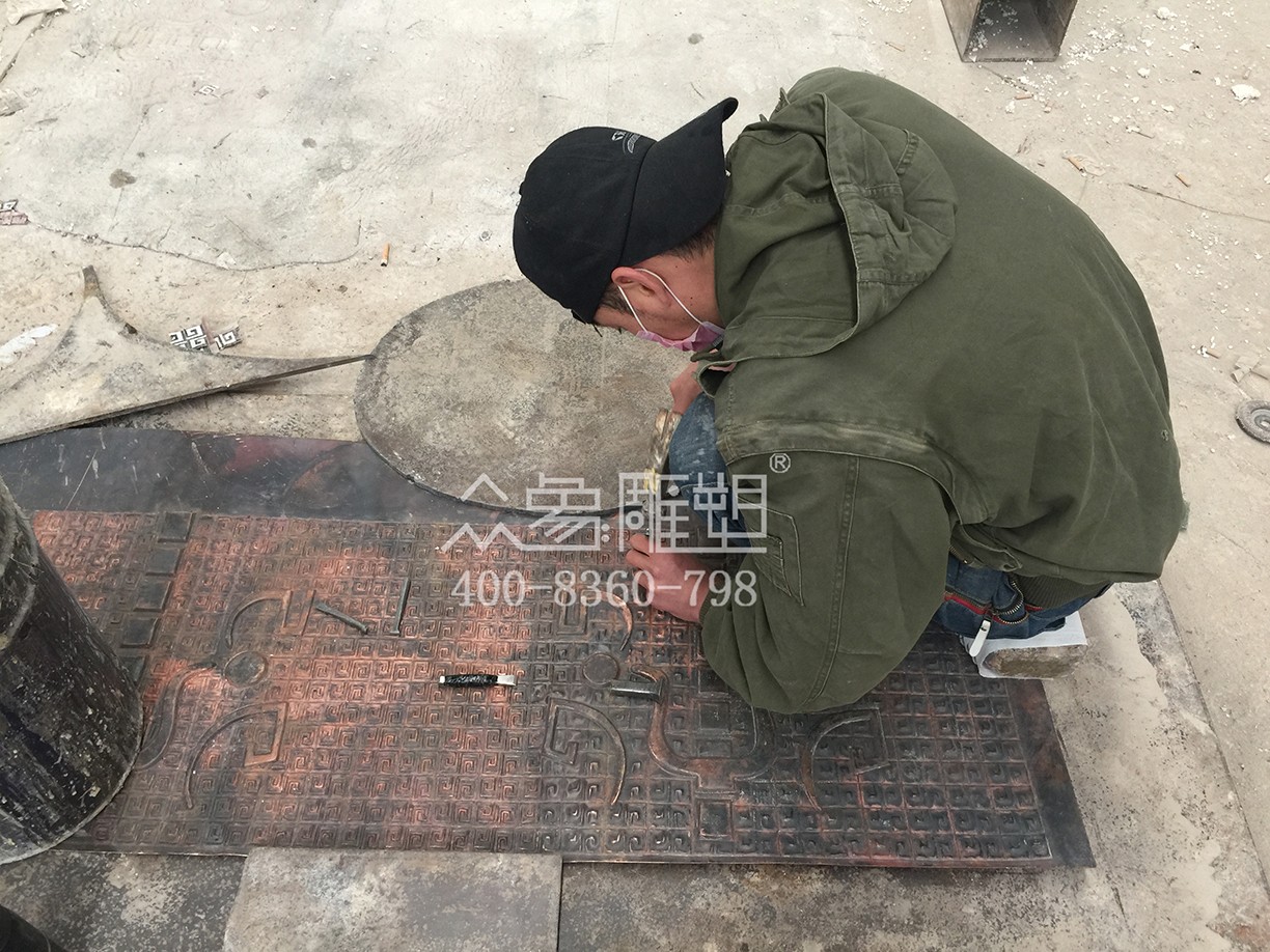師傅正在鍛造圖案。