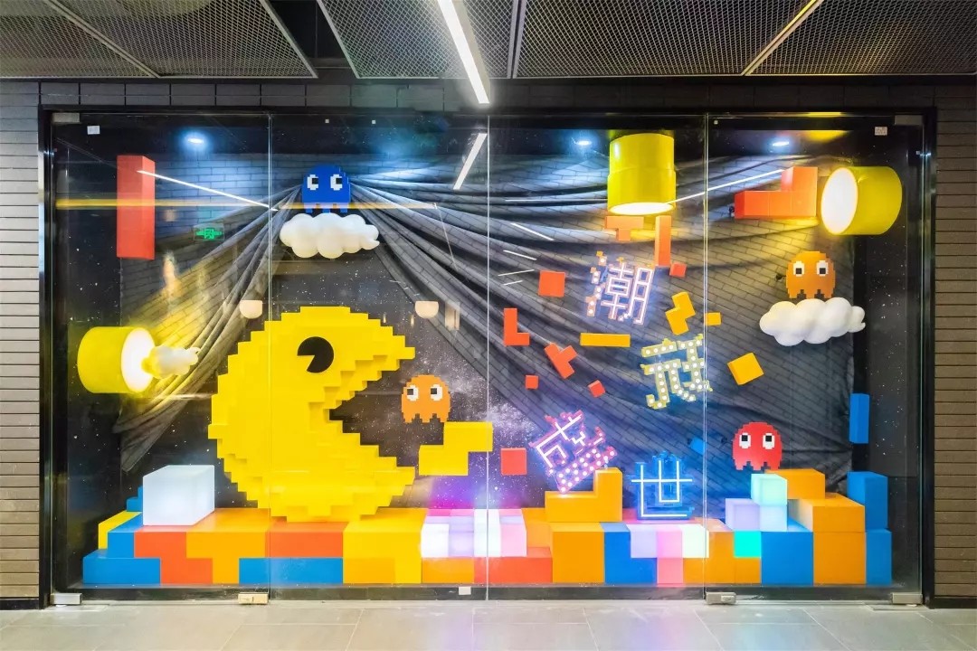 作為一個潮流、多元、時尚、兼具品質的購物中心,上海世茂廣場精心打造了“紅藍橙黃”四種主題的櫥窗美陳及萬花筒等趣味互動空間。在櫥窗中可以看到各種復古特色與新潮元素的巧妙融合,“潮玩盛世”的氣息撲面而來。